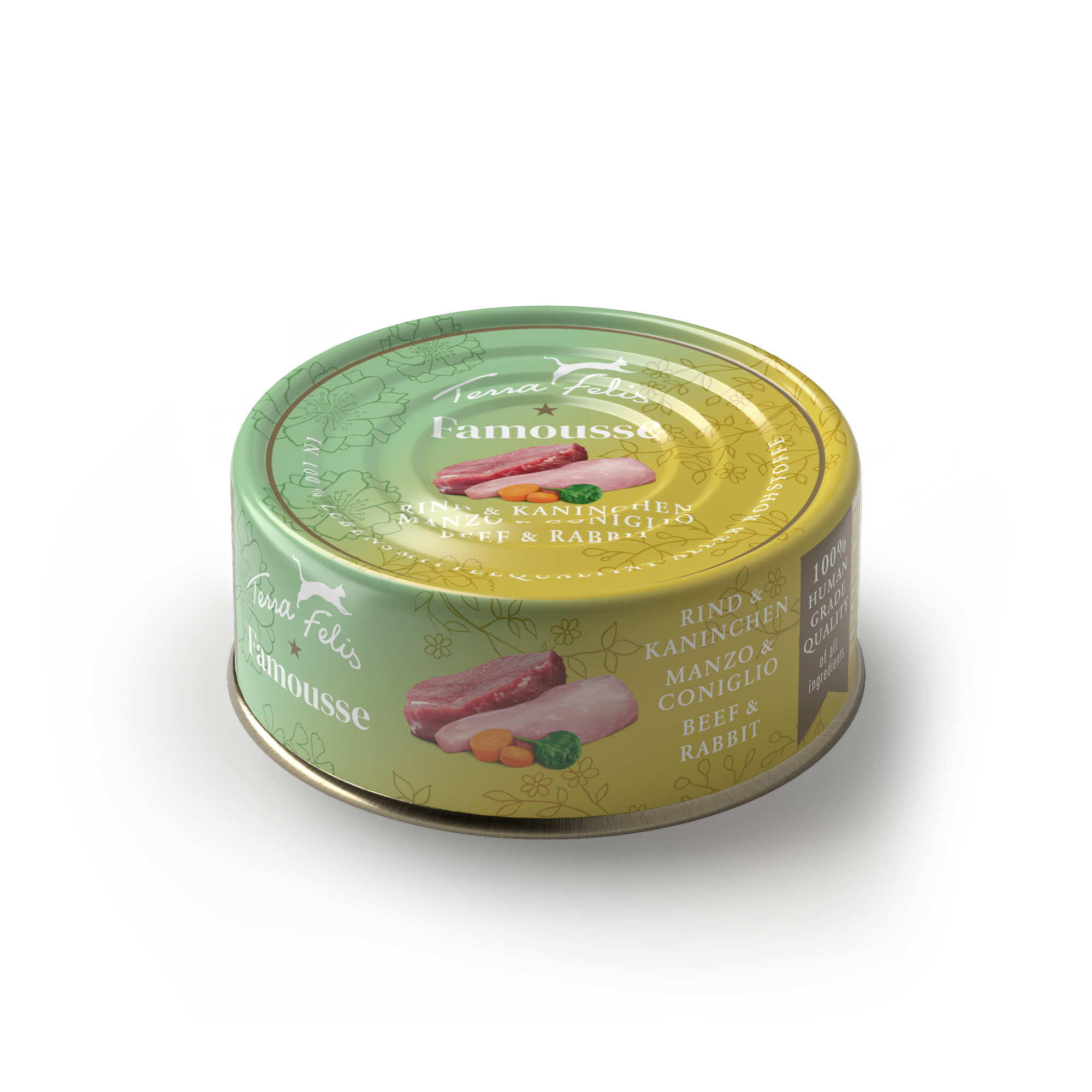 | 素材 | ウサギの筋肉(35%)、牛の心臓(31%)、牛の肺(10%)、牛レバー(10%)、牛の筋肉(4%)、人参(4%)、トマト、菜種油、キャットニップ、ミネラル類、グアーガム(増粘剤として使用)、リン酸三ナトリウム |